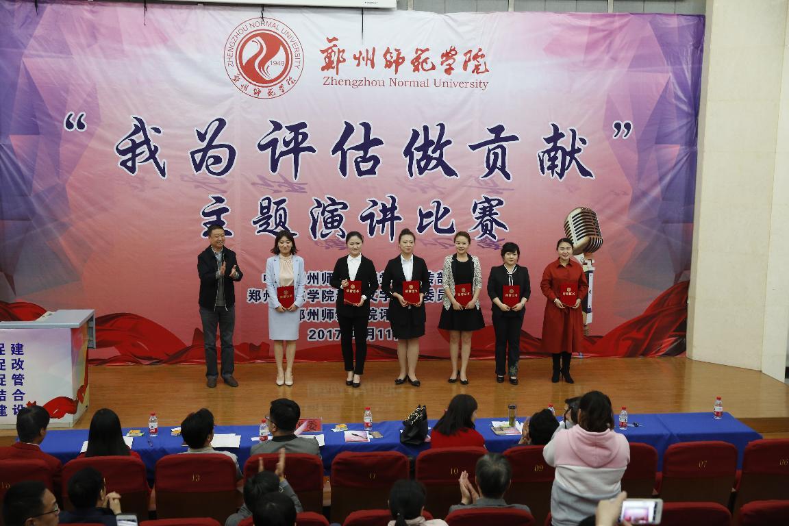 为迎接明年国家教育部对我校本科教学工作合格评估工作,引导师生积极参与到教学合格评估工作中来,全面推进我校迎评促建工作。由校党委宣传部、校语言文字工作委员会、校评建办共同举办我为评估做贡献主题演讲比赛。校领导赵健、孙先科、孔青、李树生、刘济良观看比赛并为获奖选手颁奖。本次活动邀请河南省十佳节目主持人潇洒、河南演讲与口才协会艺术总监刘潇、全国金话筒获得者王林霞等专家担任评委。