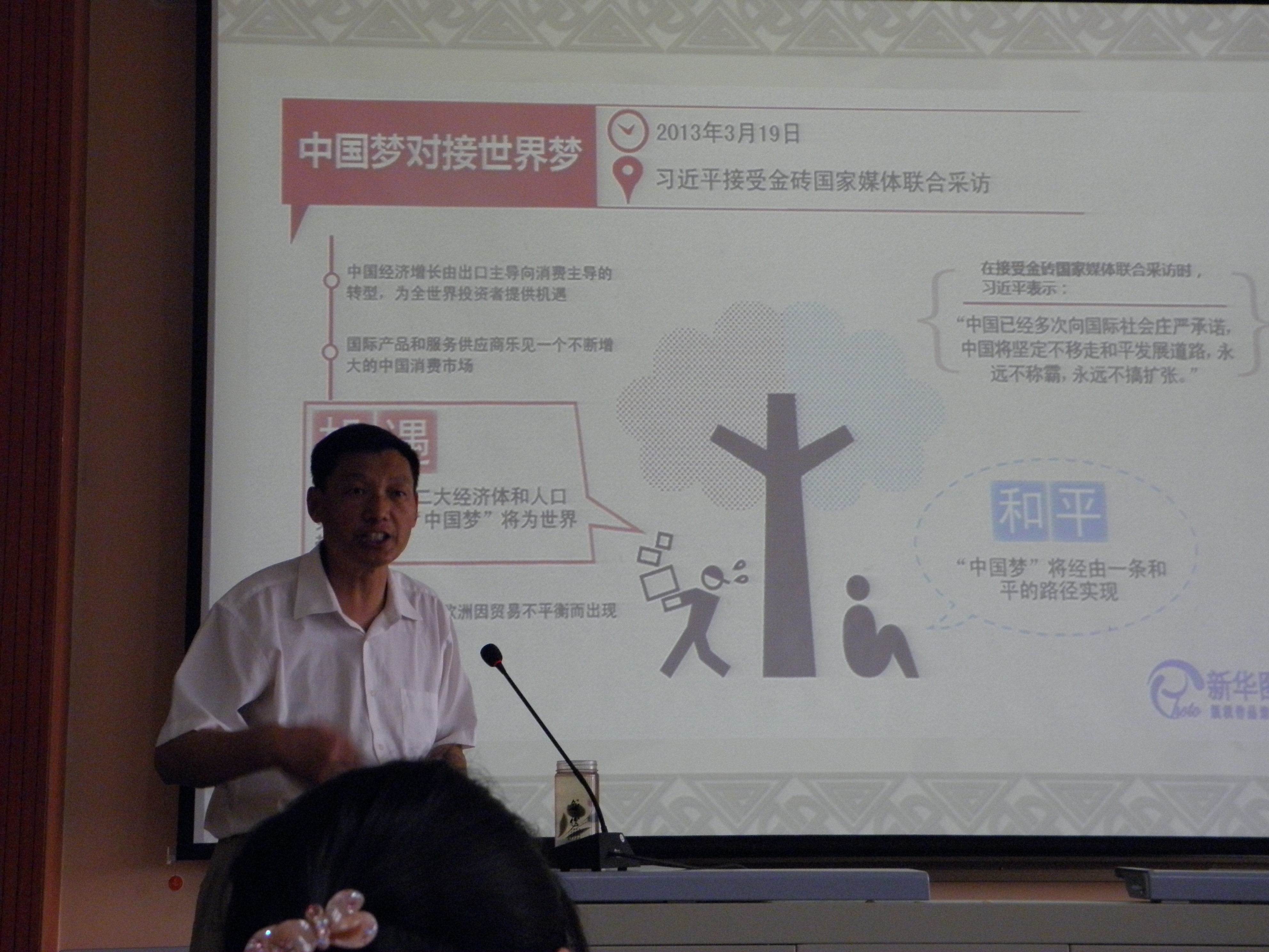 乔教授作专题报告。报告中,乔教授以他睿智的语言、儒雅的教授风范以及深入浅出的讲述为大家讲述十八大报告。同时乔教授还组织大家观看了相关视频,以更加直观立体的方式向老师、同学讲述了十八大报告中的相关内容。