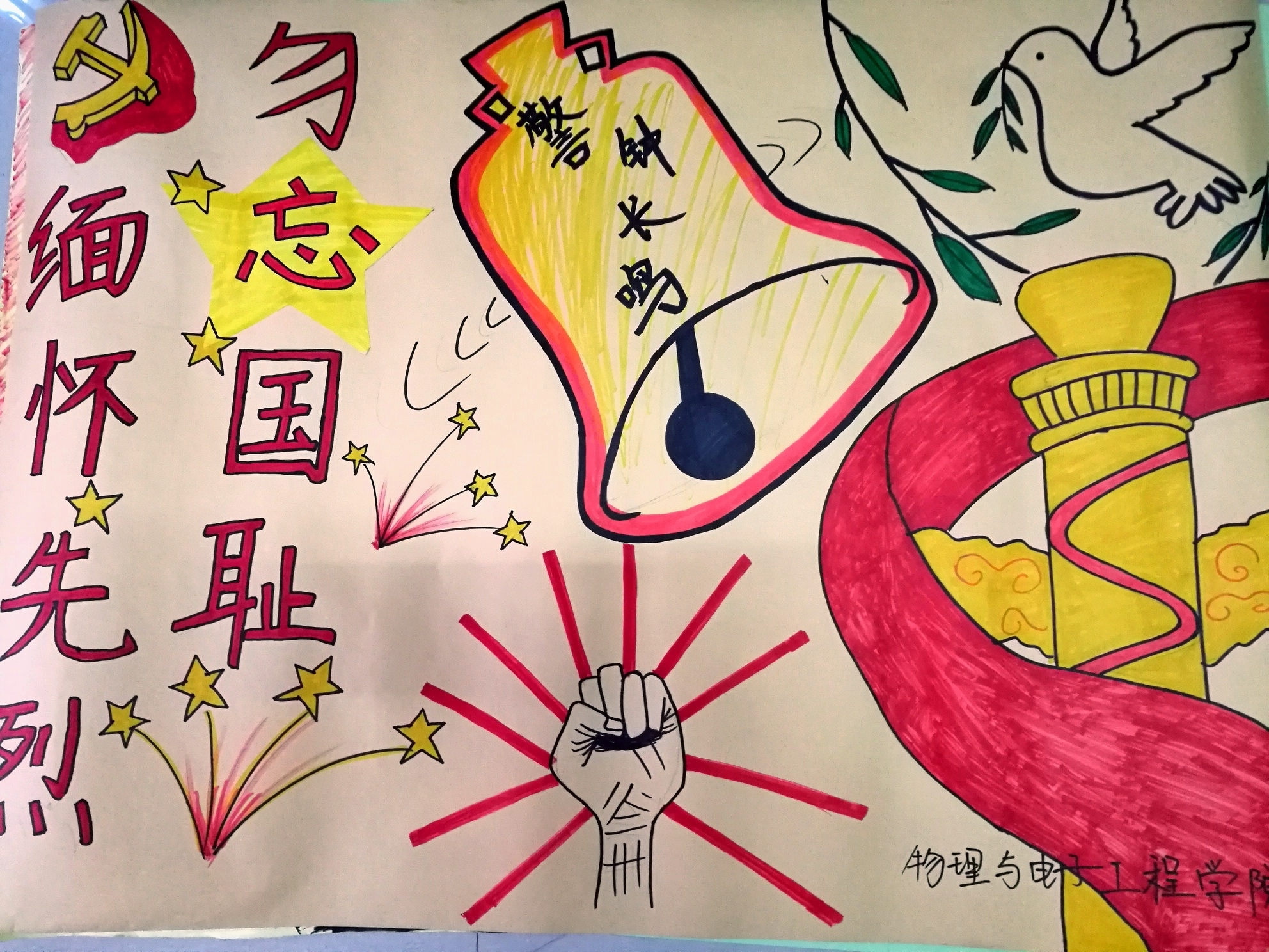 物理与电子工程学院于5月19日下午两点在西校区三号楼举行“缅怀先烈,勿忘国耻”;为主题的海报展活动。学生干部带领同学们对本次展览出的海报进行参观、讨论、学习和评选。