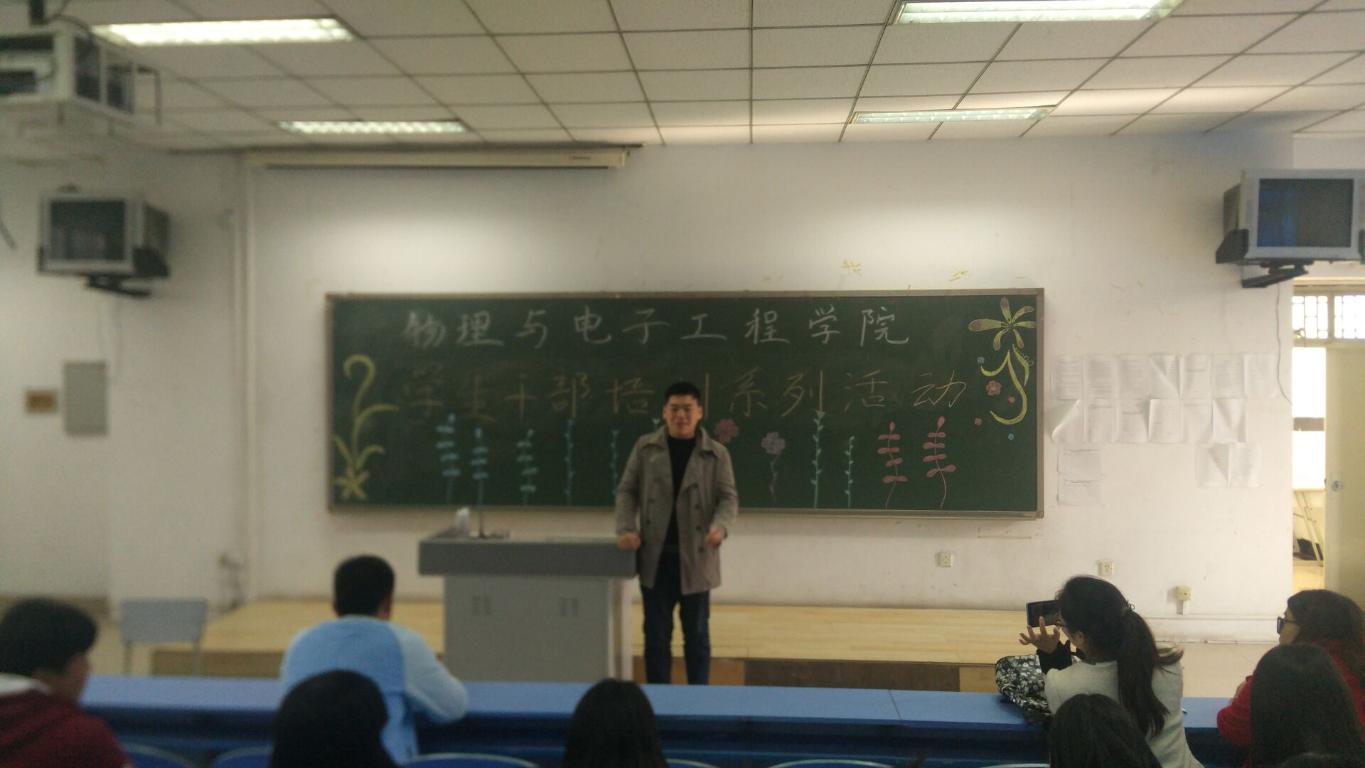 2016年11月2日中午十二点半,物理与电子工程学院学生会全体干部于西校区四阶三召开了团干部系列培训会第一期。