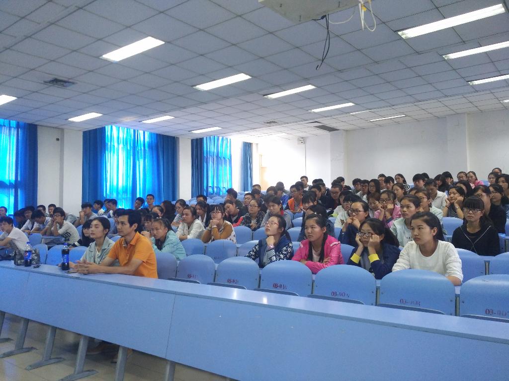 在暑期社会实践总结汇报会上,物理与电子工程学院学生会负责人朴圣东主席借助精心制作的PPT详细介绍了三门峡市卢氏县的地理风貌、卢氏县青少年活动中心的艰苦环境、难忘的支教全过程和自己的深刻感悟。同时,参与此次支教活动的支教队员刘艳航将自己支教的亲身经历讲述给同学们,她说到说到这次经历会让他记住一辈子,有机会她依然会去为这些孩子们带去温暖。真情实感的演讲深深打动了在场的每一位同学,不少同学在听到感人之处都不禁潸然泪下。最后,物理与电子工程学院团总支书记何卓进行总结讲话,让同学们充分认识 三下乡暑期社会实践活动的重要性,并讲述了自己带队的感想,鼓励大一新生积极参加暑期社会实践活动。