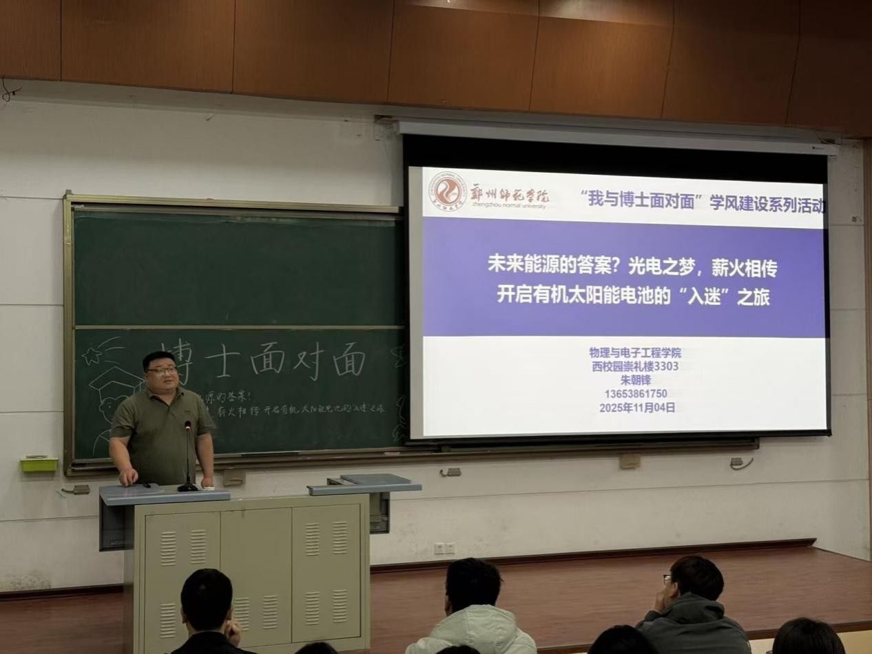 从郑州师范学院的本科时光到河南大学的硕士深耕,再到广西大学的博士攻坚,朱朝锋博士以自身成长轨迹为线索,娓娓道来科研路上的逐梦故事。本科阶段,他凭借扎实的专业积累斩获国家奖学金、河南省优秀学生干部等多项荣誉,为学术之路筑牢根基;硕士期间聚焦CsPbBr₃量子点相关研究,迈出科研探索的关键一步;博士阶段深耕有机太阳能电池领域,在绿色能源赛道上持续突破,完成了从“学术新人”到“科研骨干”的蜕变。