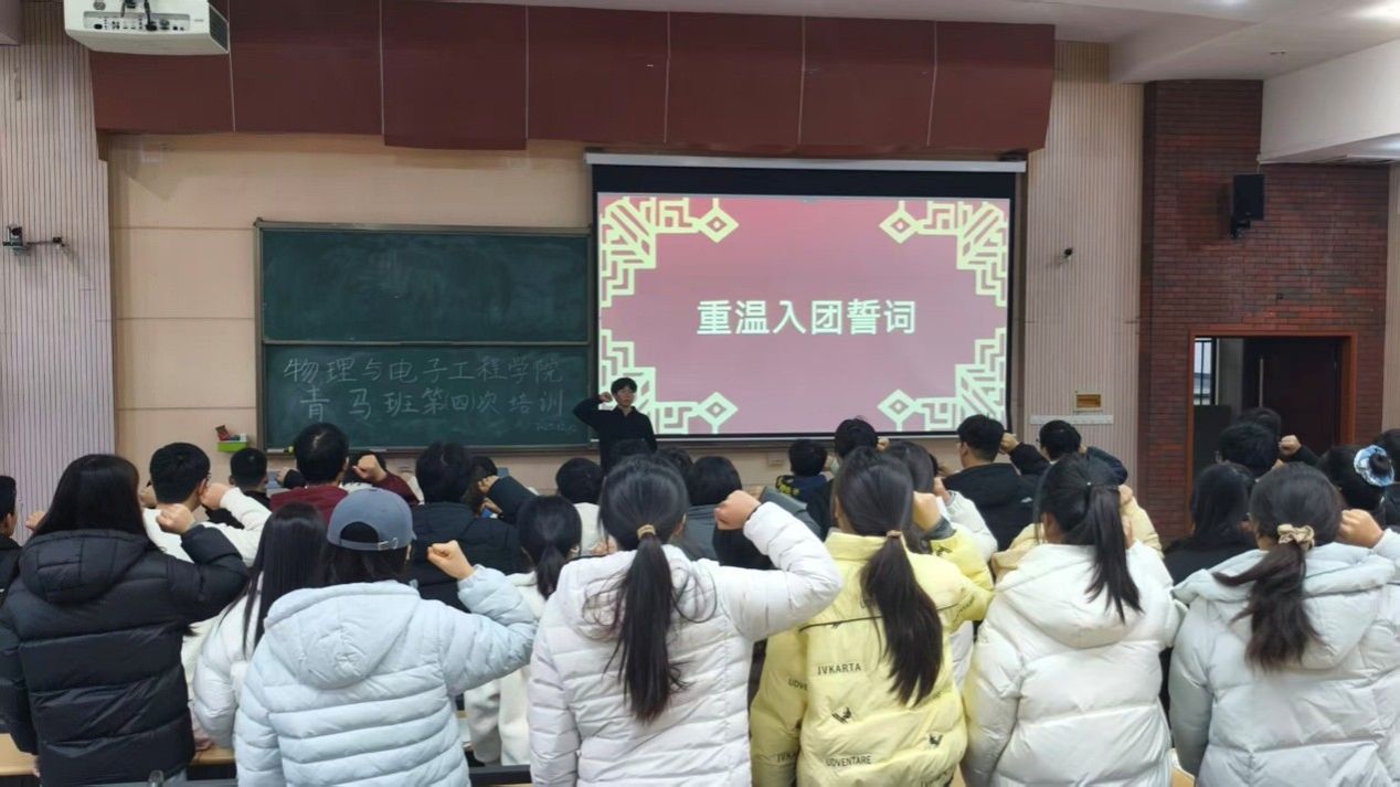 活动的最后,全体同学高举右拳,面向团旗庄严宣誓,重温入团誓词。“为共产主义事业而奋斗”的誓言铿锵有力,回荡在会场的每一个角落,彰显着青马学员们不忘初心、砥砺前行的坚定信念。