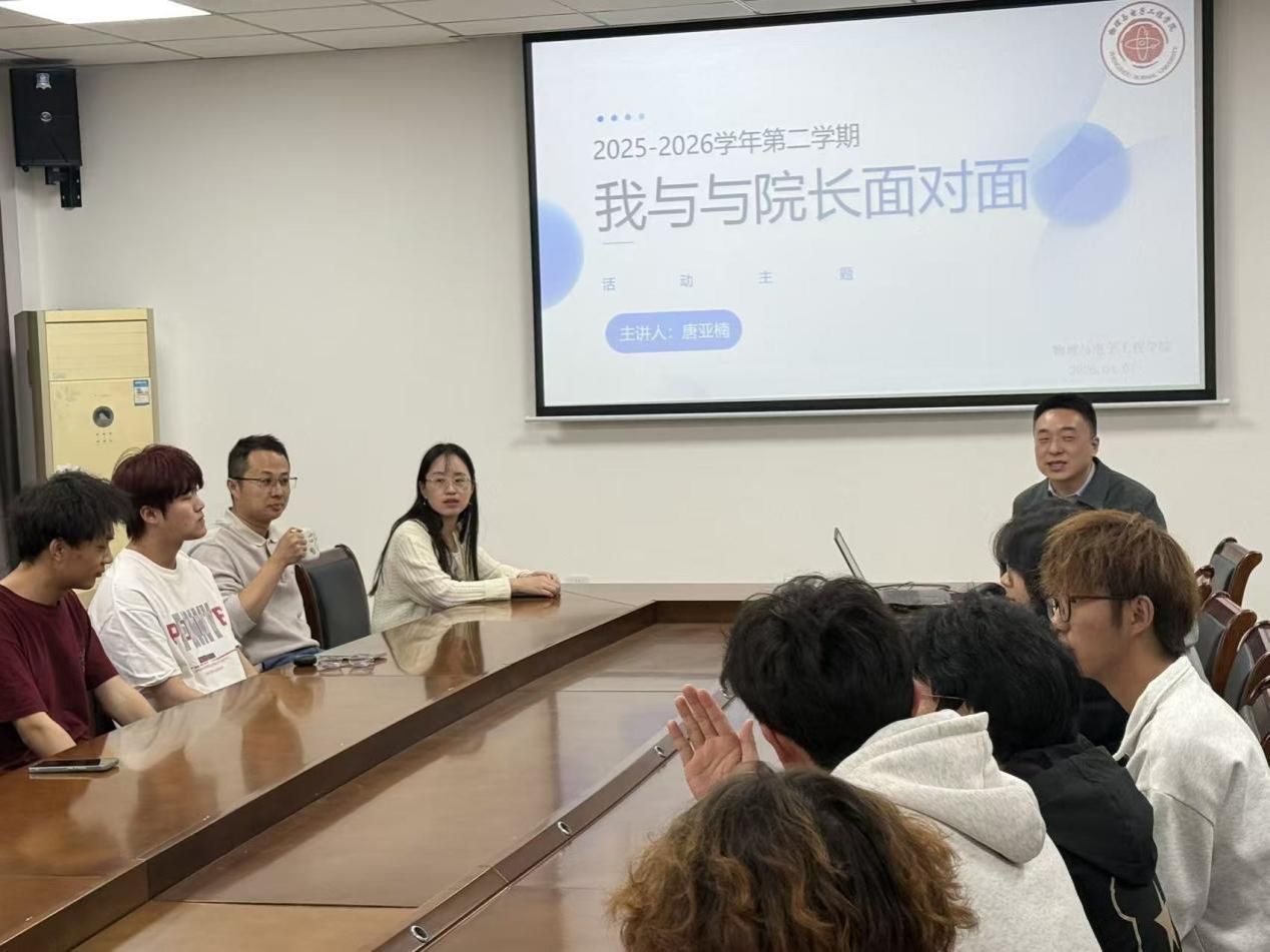 4月7日,我院“我与院长面对面”主题座谈会在崇礼楼3304顺利举行,唐亚楠院长、王化雨主任、熊世萍老师及2025级光电信息科学与工程班全体同学参会。院长与同学们齐聚一堂,共话成长、共解困惑,为大一新生快速适应大学生活、明确未来发展方向搭建了高效沟通平台。