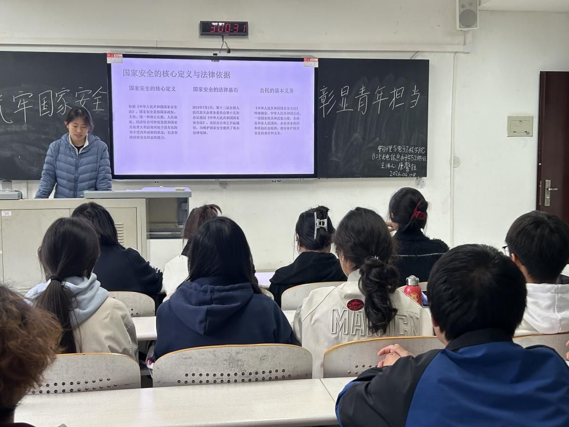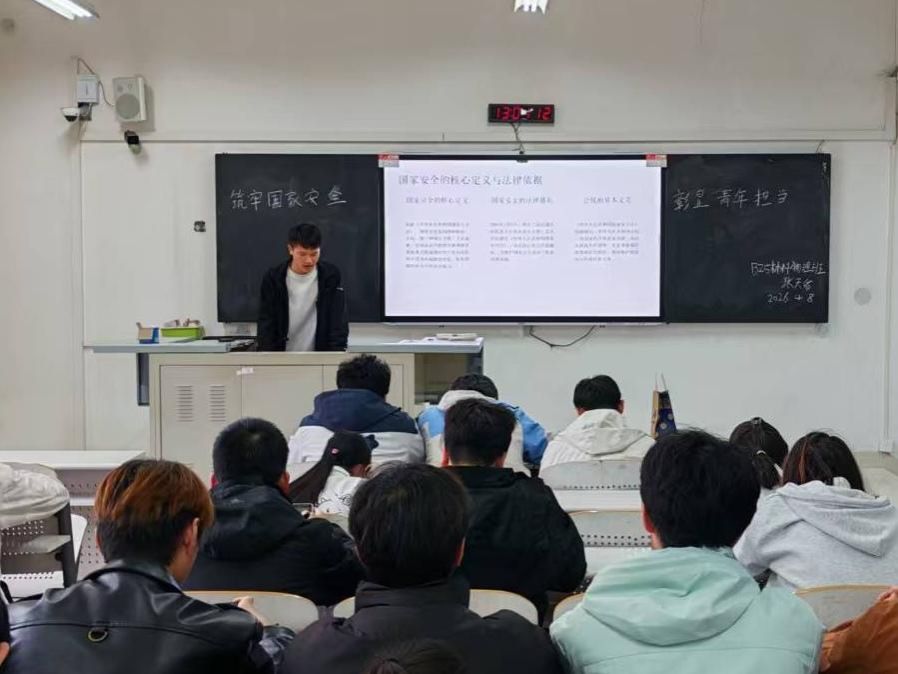 为深入贯彻落实总体国家安全观,增强广大团员青年的国家安全意识与责任担当,我院团总支于04月08日组织开展了以“筑牢国家安全,彰显青年担当”为主题的团课活动。