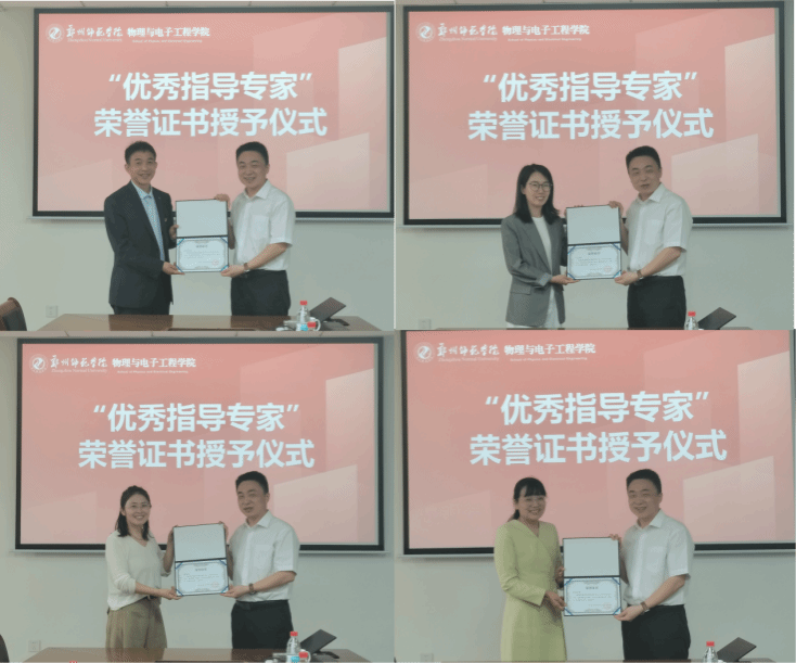 在交流座谈环节,四位专家结合自身丰富的教育教学与学生管理经验,为人才培养方案的修订提供宝贵建议。李竞川主任结合二十六年物理教学与教务管理经验提出四个方面的建议:一是结合中学物理学特点,引入人工智能相关课程,提升师范生AI技术在中学物理教学中的应用能力;二是将思政教育有机融入专业教学全过程,增强物理师范生的思政意识;三是加强劳动教育的系统设计,潜移默化提高师范生的生活和工作能力;四是注重实验技能提升与仪器开发能力培养。卢杰主任立足科学教育实验校建设成果,从七个方面对师范生的能力培养提出建议,涵盖跨学科实践教学、师范生对中学课程的评价设计能力、数智化能力培养、定量分析能力、科研素养的培养、中学教育的国际视野拓展等方面。霍雨老师结合当前中学新进物理教师综合素质现状,针对师范生职业热情的培养、课程板书的深度与规范性、高阶物理课程的适度性、中学实验开发课程建设、虚拟仿真实验应用,以及微课教学与跟岗训练等提出具体的建议。张春英老师从我院育人软实力提升的角度,建议增设人际沟通类课程以提高师范生的沟通能力、强化心理素质与职业抗压能力培养以提高师范生适应中学教学的新要求、提升学生的动手实践能力以满足中学物理实验的创新要求。随后,学院与会教师与各位专家围绕课程体系设置、实践教学安排、师资能力培育等关键问题开展深入交流研讨,进一步凝聚修订共识、明晰优化路径。与会教师一致表示,专家意见贴合基础教育实际、指导性强,为方案修订提供重要参考。最后,唐院长为李竞川、卢杰、霍雨、张春英四位专家颁发了“优秀指导专家”荣誉证书,对专家长期以来关心支持学院教育教学各项工作表示诚挚感谢,并希望以本次会议为纽带,在师范生联合培养、教育实习基地建设、教学研究协同创新、毕业生就业指导等方面深化校地合作、实现协同育人,全面提升物理学师范专业人才培养质量。